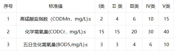 按照《中華人民共和國地表水環(huán)境質(zhì)量標(biāo)準(zhǔn)》,依據(jù)地表水水域環(huán)境功能和保護(hù)目標(biāo),我國水質(zhì)按功能高低依次分為五類: