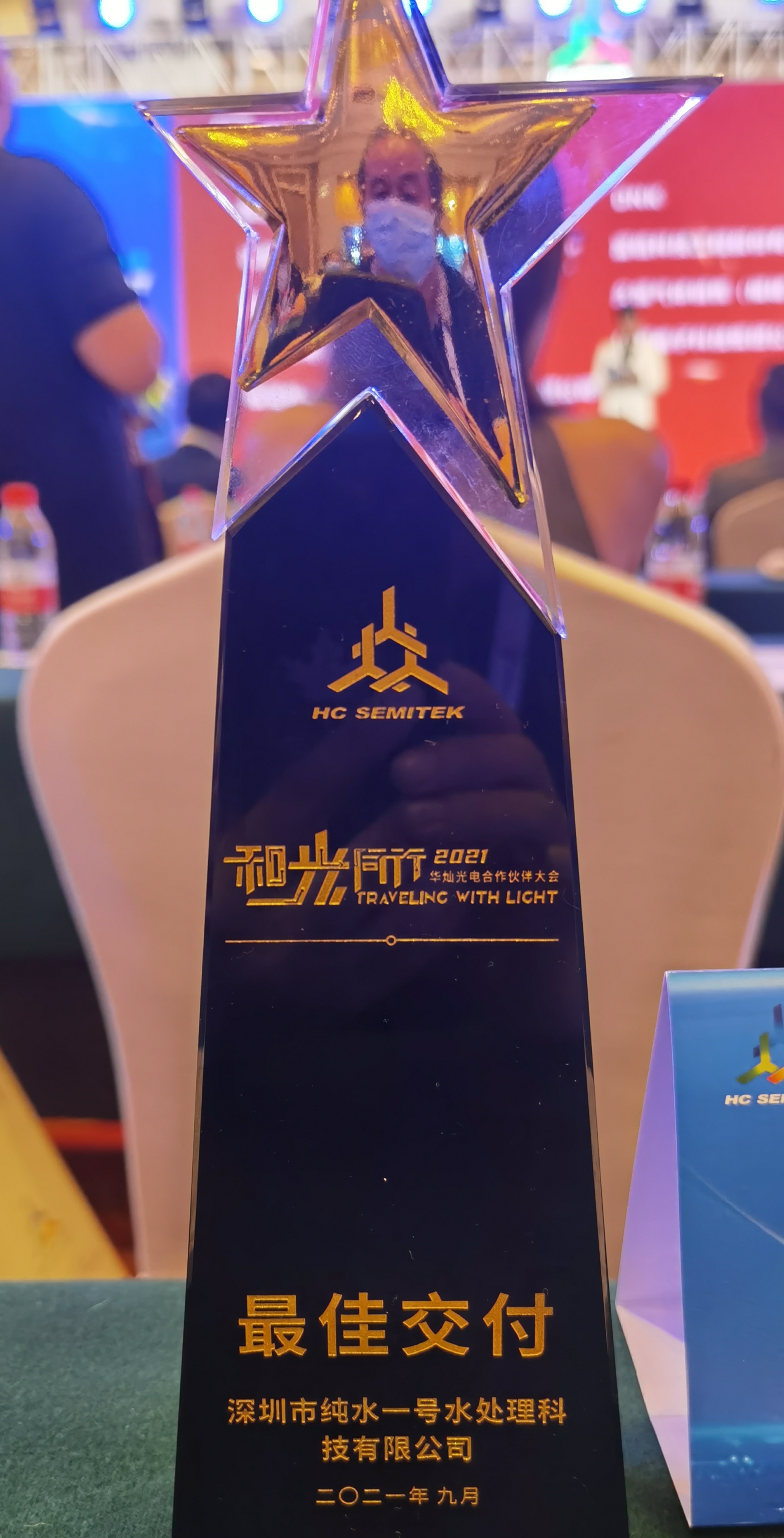 在2021年9月17日浙江義烏華燦光電有限公司召開的2021華燦光電合作伙伴大會(huì)上,深圳市純水一號(hào)水處理科技有限公司因?yàn)槟_踏實(shí)地創(chuàng)造精品,以精誠合作的態(tài)度,高效率的生產(chǎn)周期,走在了同行的前列,贏得了時(shí)間的勝利,贏得了華燦工業(yè)的無限信賴,榮獲2021華燦光電最佳供應(yīng)商交付獎(jiǎng)。其實(shí)不僅在華燦光電,純水一號(hào)對(duì)每一個(gè)項(xiàng)目的交付時(shí)間和交付質(zhì)量都嚴(yán)格要求,力求高效率、高精準(zhǔn)、高要求、高質(zhì)量的完成客戶交給我們的每一張訂單。