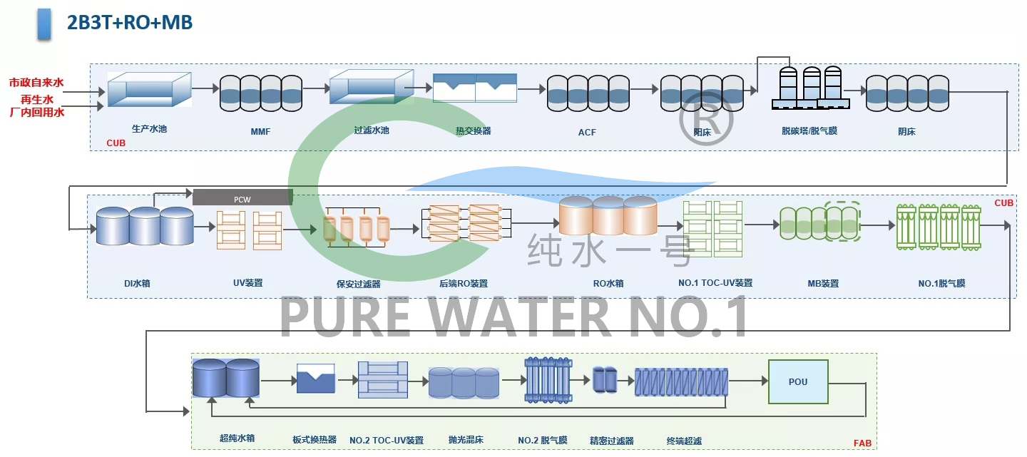 半導(dǎo)體IC封裝超純水可選工藝流程: