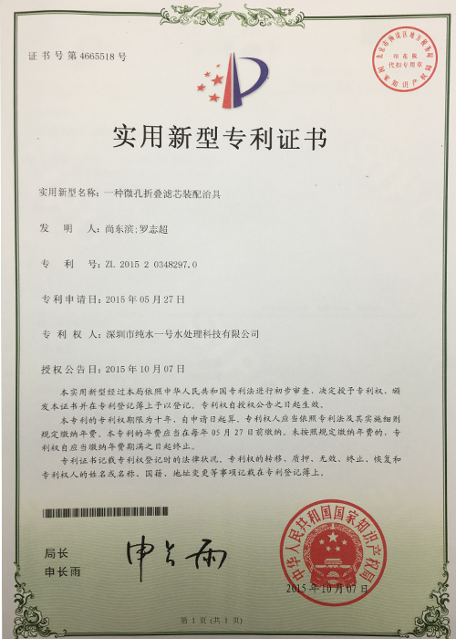 一種微孔折疊濾芯裝配治具專利證書