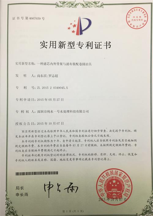 一種濾芯內(nèi)外骨架與濾布裝配卷圓治具專利證書